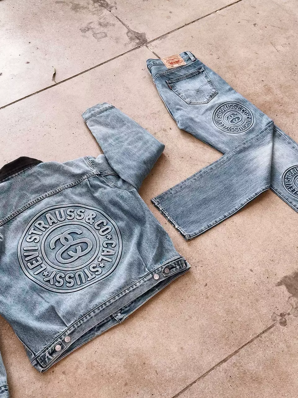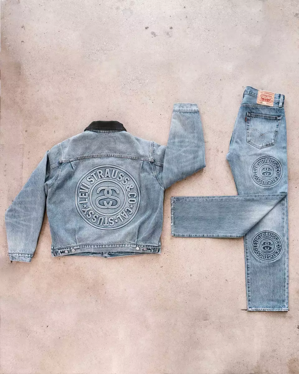 Stüssy's dropping another denim collab with Levi's, reimagining washed-out 501 jeans & trucker jackets with debossed 3D logos. Here's the release date.